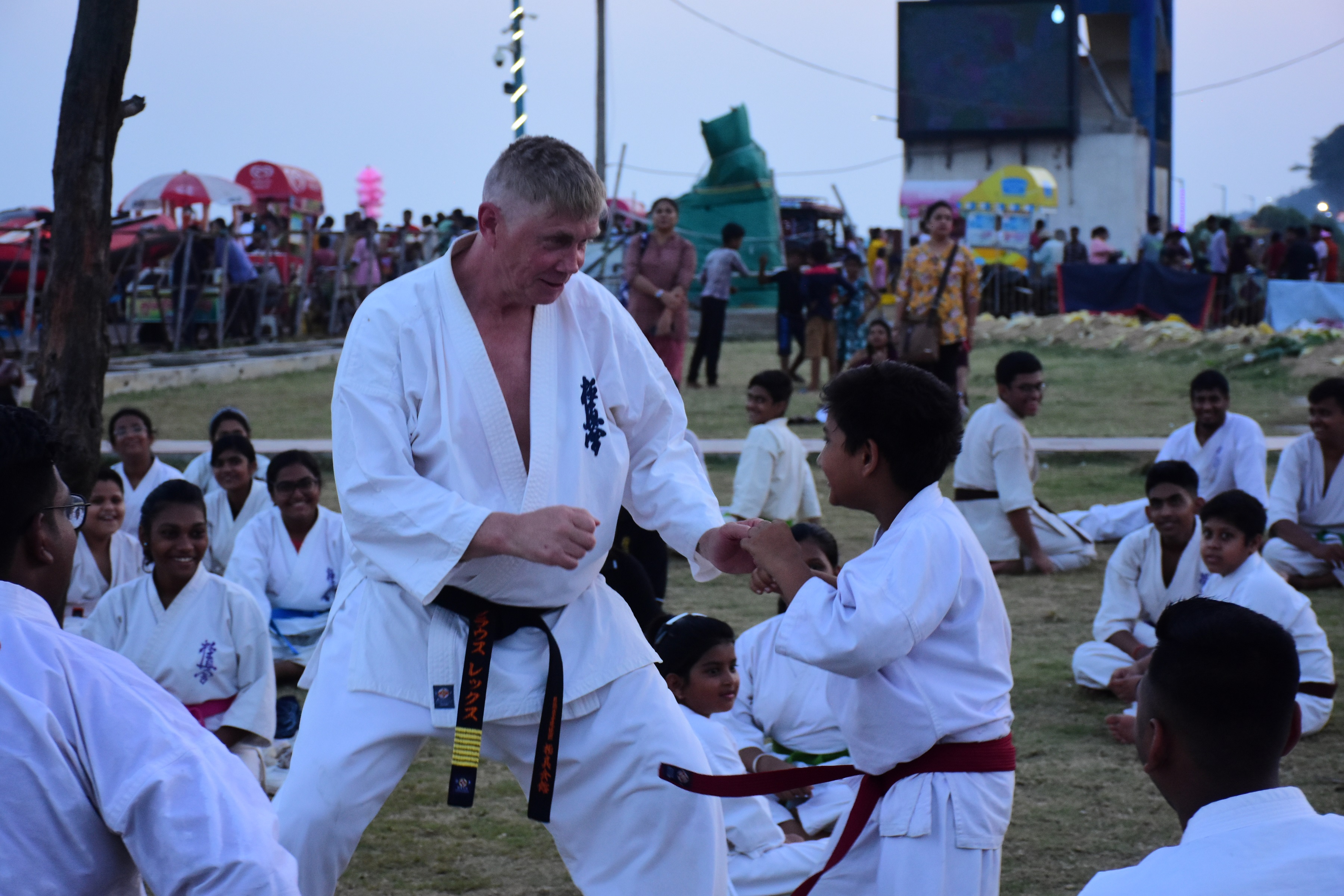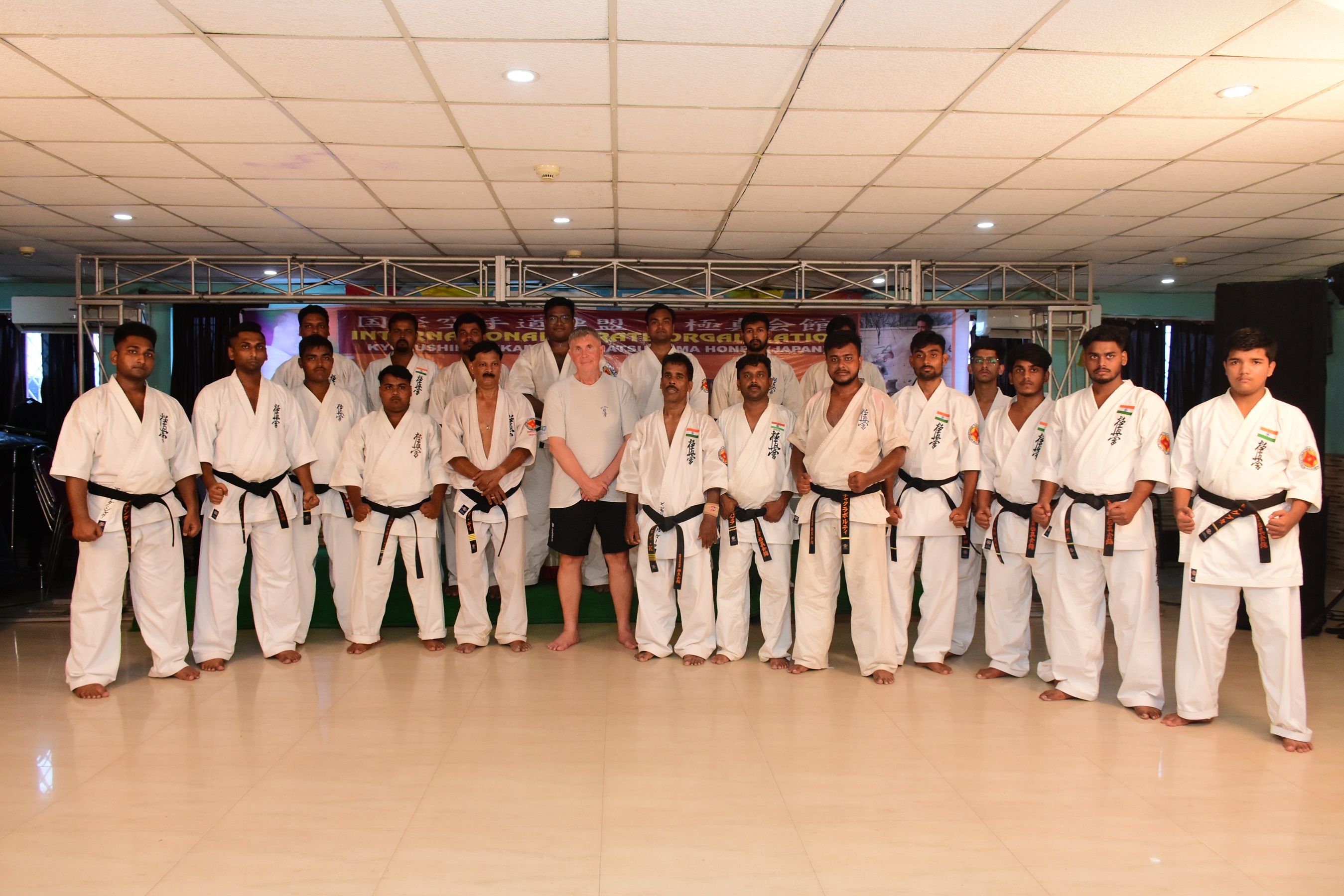 インド支部で夏のキャンプと審査会が行われ、レックス支部長が指導にあたった。