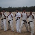 約150名参加し、型、組手の稽古などが行われた。